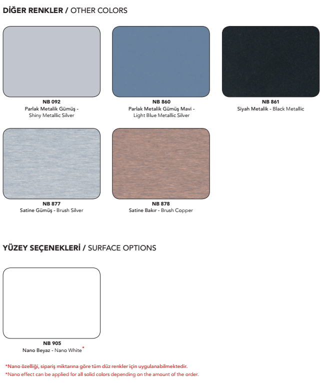 | Kompozit Panel Kalınlığı | 2,5 mm – 6 mm |