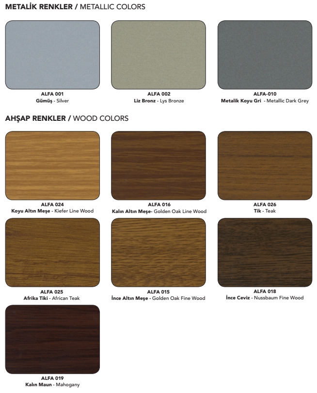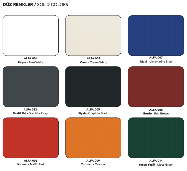 | Alt Metal / İç Yüzey | 0,30 – 0,90 mm I Ral Katalog Renkleri |