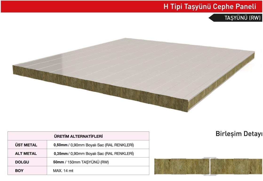 Taşyünü Dolgulu Cephe Panelleri; Yangın riskinin yüksek olduğu yapılarda ve azami yangın dayanımı istenen binalarda güvenle kullanılır. Cephe paneli bağlantı elemanını gizleyen sistemi sayesinde cephelerde kullanıma uygundur. Hem yatay hem de düşey uygulanabilmesi sayesinde montaj esnekliği sağlayıp ayrıca tasarımcılara güzel çözümler sunarlar. Cephede estetik bir görüntü elde etmek için çoğunlukla mikro hadveli olarak üretilirler.