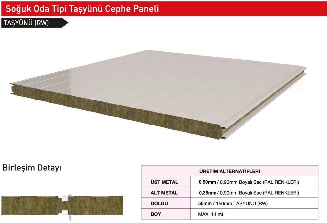 Taşyünü Dolgulu Cephe Panelleri; Yangın riskinin yüksek olduğu yapılarda ve azami yangın dayanımı istenen binalarda güvenle kullanılır. Cephe paneli bağlantı elemanını gizleyen sistemi sayesinde cephelerde kullanıma uygundur. Hem yatay hem de düşey uygulanabilmesi sayesinde montaj esnekliği sağlayıp ayrıca tasarımcılara güzel çözümler sunarlar. Cephede estetik bir görüntü elde etmek için çoğunlukla mikro hadveli olarak üretilirler.